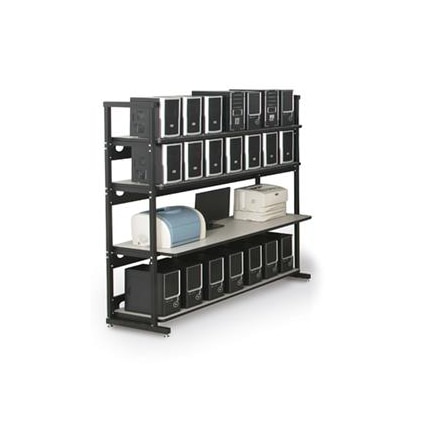 The Kendall Howard 200 Series Workbench provides plenty of depth for storage under the work surface. Two 14-inch-deep modular shelves form the lower shelf and together have a weight capacity of 500 lbs. The two 16-inch-deep upper shelves adjust in any increment and the worksurface height is fixed at 30 inches. Its built-in cable management channels keep network cables and power cords organized. This workbench’s completely modular design makes it simple to create the perfect workstation.