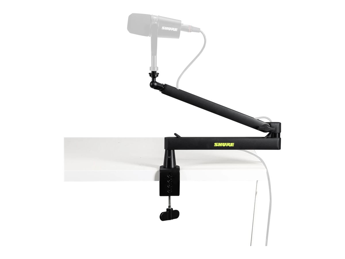 The Shure SH-BROADCAST2 boom arm offers a versatile solution for microphone positioning. Designed for table tops up to 55 mm thick, it provides stability and easy access during broadcasts or recordings. The ability to adjust the length and a full 360° rotation offers flexibility for a variety of setups. This boom arm combines functionality with a compact design, making it a suitable choice for professionals and hobbyists needing reliable equipment for audio projects.